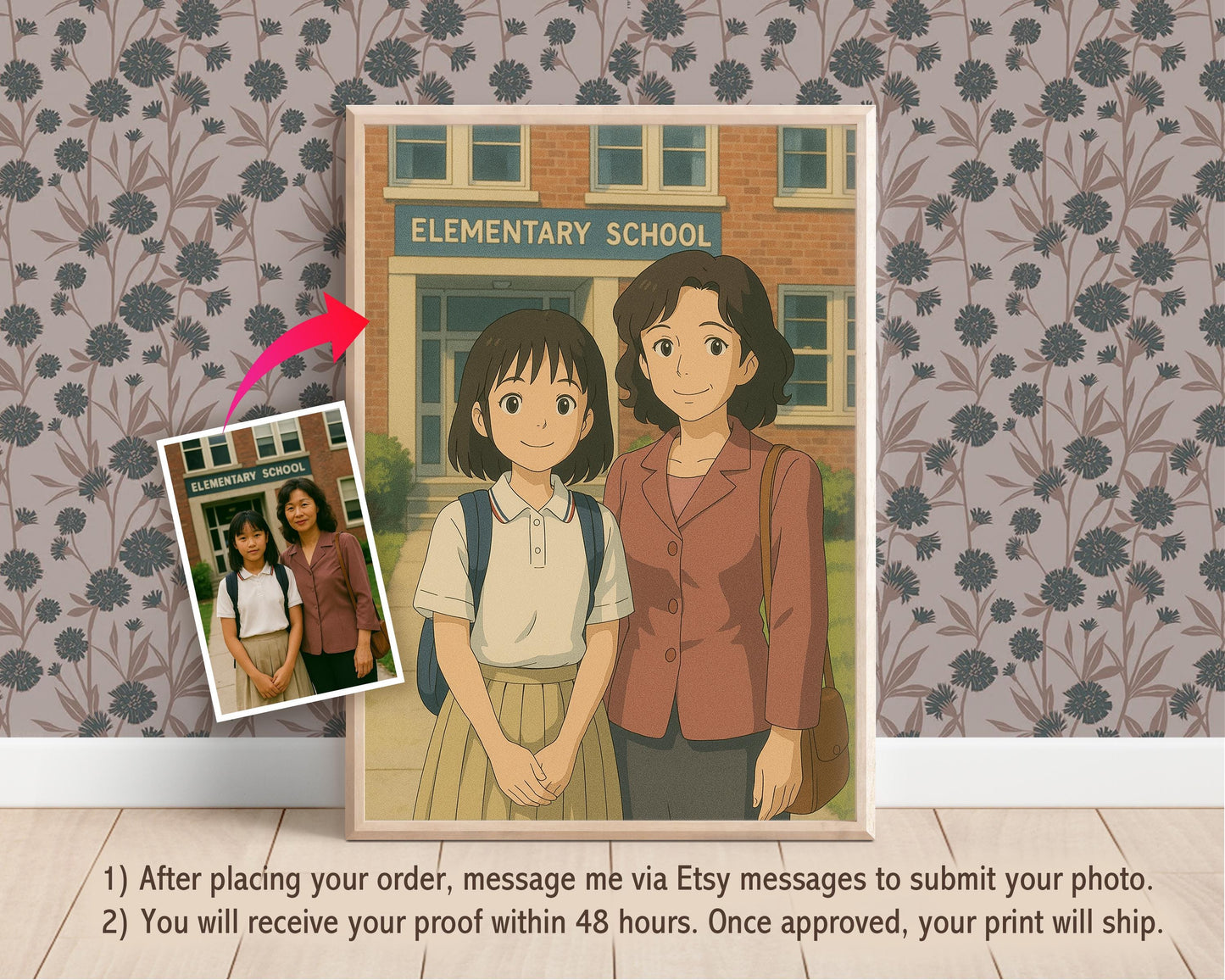 Custom Anime Family Portrait, Mother's Day Portrait, Anniversary, Ghibli Style, Printed Gift